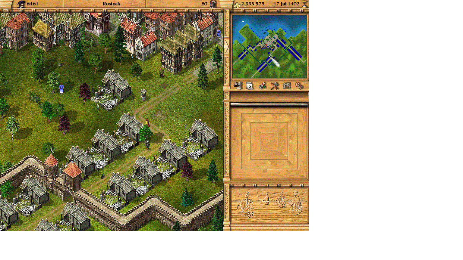 Hoffnungslos verbaut. Da kann man in Rostock ohne Gasse um die Ecke bauen und dann setzte ich die Ziegelei völlig daneben. Hab mich wohl nur an den Brunnen orientiert, anstatt auf den Straßenverlauf zu achten. Muss leider 1 Monat zurück, zum 15.06.1402 um dies wieder zu korrigieren. Ich hab es mir zuerst Bautechnisch angeschaut, ob ich nicht doch noch einigermaßen um die Ecke komme. Aber da war nichts mehr zu retten. X(